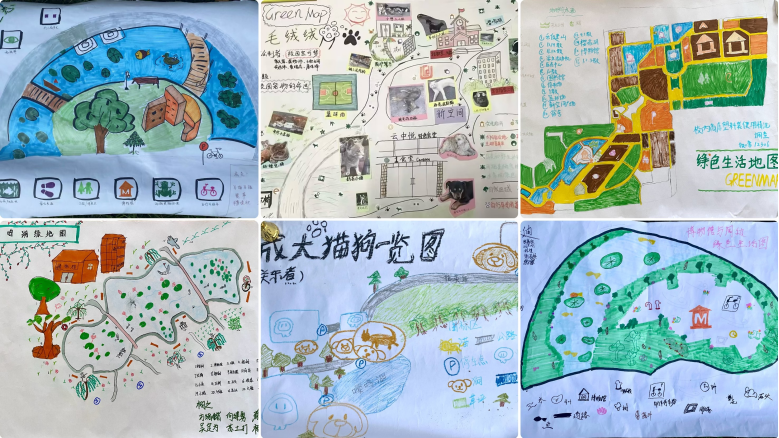 在地图上标示出生活环境中有关自然、文化与环保的景点,就是一张绿色生活地图。绿地图目前已经遍布世界,各国都有人在尝试着绿地图的方式来爱护自然。将校园人文、自然景观绘制成一幅校园“绿地图”,与别的地图不同的是,在这份地图里介绍了校园内自然景观、生态场域、节能设施等,以此来提倡绿色、低碳的校园生活。在课程中激发同学们接触、了解自然环境的热忱和积极性,共同探索隐藏在校园中的各种自然现象、生态设施、被忽视的荒野,以及生命力旺盛的植物和不易察觉的动物……促使同学们在探索中思考自己的生活方式,思考更健康、更与自然和谐的生活选择,并共同制作一份独属于本校校园的绿地图。