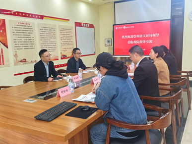 党委书记黄进、院长陈小平、党委副书记丁璐及学工办主任舒愉棉在建工楼党员活动室接待来宾并举行座谈交流会。