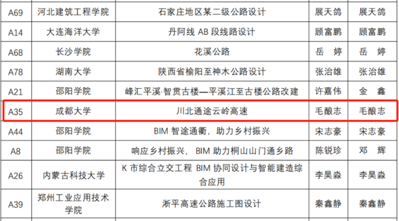 代表队凭借作品《川北通途:云岭高速智能仿真与优化设计》在公路工程BIM赛道中脱颖而出,荣获全国三等奖,实现了学院在该项赛事中的历史性突破。