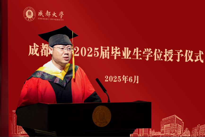 典礼在庄严的国歌声中正式拉开序幕。陈小平院长代表学院致辞,向2025届全体毕业生表示热烈祝贺。他深情回顾了2025届毕业生在校期间的点点滴滴,并勉励同学们要坚守专业初心、勇担时代使命,将个人理想与国家发展紧密相连,在服务国家战略的广阔天地中找准人生坐标,成就非凡价值。