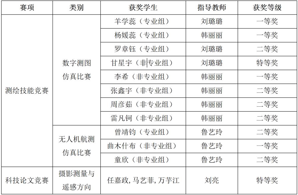 在学校和学院领导的大力支持下,测绘系积极开展大赛筹备和赛项指导工作。经6月份的校赛选拔,最终确定26项测绘技能、2篇科技论文和1项创新开发参赛。参赛选手们刻苦训练、积极备赛,经激烈角逐,在测绘技能竞赛和科技论文竞赛赛项荣获佳绩。