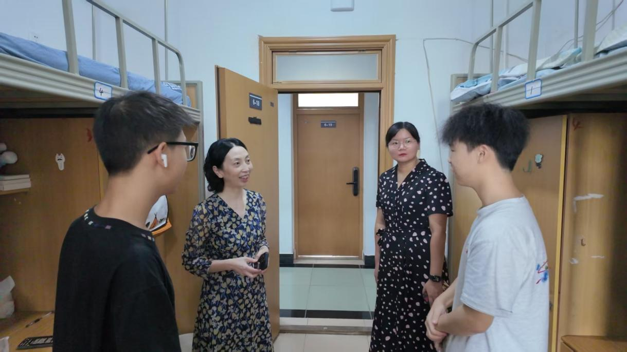 学院领导、各系主任、教师代表、辅导员和新生班主任共同来到学院迎新服务点,详细了解新生报到流程,慰问迎新工作人员,随后进入宿舍看望新生。学院党委书记黄进与新同学们亲切交流,仔细询问入校感受,鼓励大家勇于突破自我,积极适应新环境,合理规划大学时间,实现个人成长。院长陈小平向学生和家长们介绍学校美食,告诉同学们既要填饱肚子,也要学好知识,勉励新生们要保持积极向上的态度,勤学恒志,求实创新。