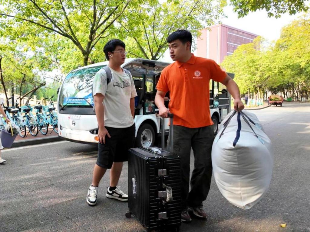 2025级班主任助理、学院分团委学生会干部及学生党员志愿服务队以饱满的热情和周到的服务,帮助和引导新生完成一系列报到手续,顺利入住寝室。他们身着统一服装,从新生手中接过沉甸甸的行李,一次次往返于报到处和宿舍之间,确保每位新生都能顺利完成报到流程,安心入住。