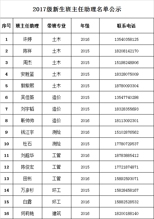 经过严格地面试考核,现将2017级班主任助理名单公示如下,公示期5天,自2017年7月24日至2017年7月28日止。如有异议,请以书面形式并署真实姓名,于2017年7月28日前向成人视频 学生工作办公室反映。