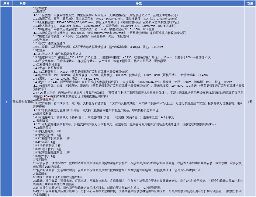 拟采购设备的品名、数量、技术参数与要求如下表所示。
