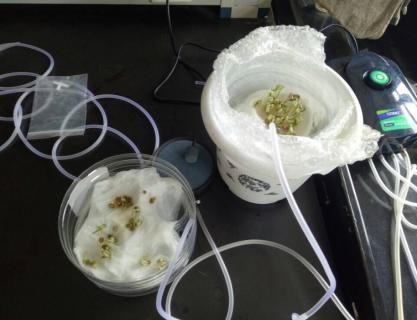实验前,同学们积极查阅相关资料,并在曾老师的详细讲解和示范实验下,系统了解了富营养化废水的配制、检测、豆科植物特性等相关专业知识。随后,对豆科植物种植、物理装置制作、富营养化废水氨氮监测、不同浓度废水对植物的影响等几部分展开了系统实验研究,于5月下旬顺利完成了部分实验,并取得了预期的实验效果,使学生对课本外的生态污水处理技术有了新的直观认识和感受。