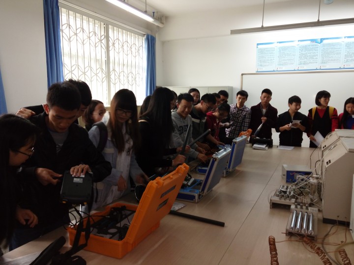 于本学期开设了诸多开放性实验项目。从本学期第11周开始,在高珊老师的指导下,开放性实验《混凝土强度无损检测实验》、《混凝土保护层厚度及钢筋位置检测实验》、《楼板厚度无损检测实验》、《混凝土结构裂缝宽度无损检测》及《混凝土结构裂缝深度无损检测实验》在工程检测实验室5305顺利开展,先后有土木工程2014级和2015级学生共计40余人次参加。