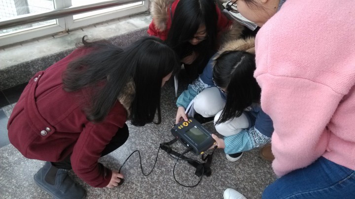 无损检测技术是指在不破坏混凝土结构构件的条件下,在混凝土结构构件原位上对混凝土结构构件的强度和缺陷进行直接定量检测的技术,在实际工程中应用非常广泛。在高老师的详细讲解和示范实验下,系统了解了实际工程中结构物无损检测的项目及检测方法,学会将所学的理论知识应用到实际工程项目中来。同学们在高珊老师的指导下,以第五教学楼的结构物为检测对象,分别对混凝土、钢筋及楼板进行了无损检测实验。不仅了解了无损检测仪器设备的工作原理、操作规程和使用方法,同时还掌握了实际工程中如何对结构物进行现场检测并对其安全性进行评估。各个开放性实验于11月下旬顺利完成,并取得了预期的实验效果同学们从中受益匪浅。