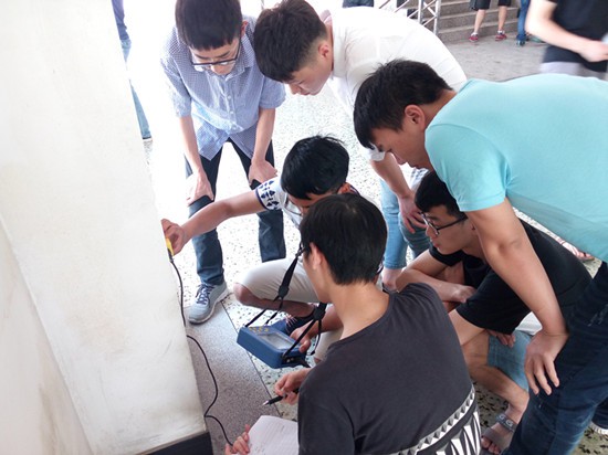 实验前,同学们积极查阅相关资料,并在高老师的详细讲解和示范实验下,系统了解了实际工程中钢筋混凝土结构的无损检测的项目及检测方法,学会将所学的理论知识应用到实际工程项目中来。同学们在高珊老师的指导下,以第五教学楼的结构物为检测对象,分别对混凝土、钢筋及楼板进行了无损检测实验。不仅了解了无损检测仪器设备的工作原理、操作规程和使用方法,同时还掌握了实际工程中如何对结构物进行现场检测,检测获得的数据如何进行分析处理并最终得到科学合理的检测结论。各个开放性实验于6月下旬顺利完成,并取得了预期的实验效果,使学生对课本外的工程检测技术有了新的直观认识和感受。