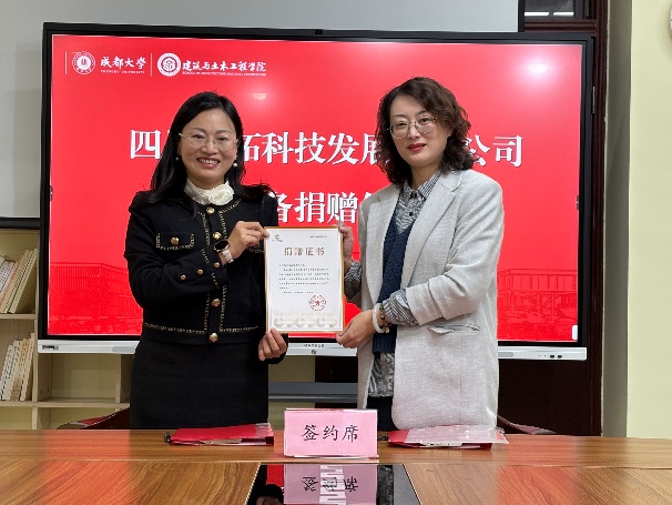仪式最后,校教育基金会与四川徕拓科技发展有限公司签订捐赠协议并颁发捐赠证书。