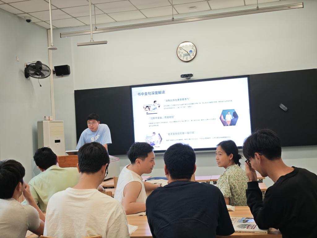 主持人以小说《不再隐身的男孩》中诺亚与自我身份斗争为引子,简要介绍了书中情节。主持人的分享展示了诺亚从自卑到勇敢站立的成长轨迹,吸引了同学们的注意。随后,同学们围绕“成长与勇气”和“寻找真我”等主题展开讨论。尾声,大家总结了阅读《不再隐身的男孩》的收获,认为虽然诺亚面临挑战,但通过努力和勇敢面对自我,他找到了内心力量,展现了青少年成长的勇气与坚持。启发土木研究生需要有勇气像诺亚一样突破自己的舒适区,探索新的研究方向和技术领域。