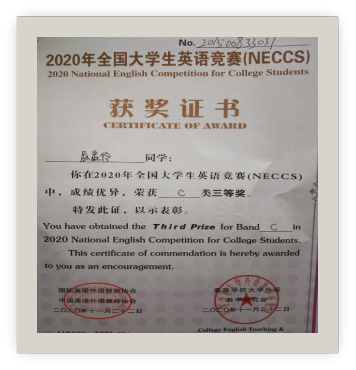 “路漫漫其修远兮,吾将上下而求索”,在大学三年多的学习历程中,屈盅伶也在学习过程中遇到过很多不适应,但她从未想放弃对知识的渴求与探索,坚定不移的意志,让她获得了专业、综测双年级第一的好成绩。并且连续两年荣获国家励志奖学金,但她并未骄傲自满,而是用脚步丈量世界,脚踏实地。同时,她深知学好英语的重要性,于是在大一学年她便积极参与全国大学生英语竞赛与第五届全国高校商务英语竞赛,均获得了三等奖的好成绩,同时还在大一期间一次性地通过了英语四、六级考试,获得普通话二乙证书。