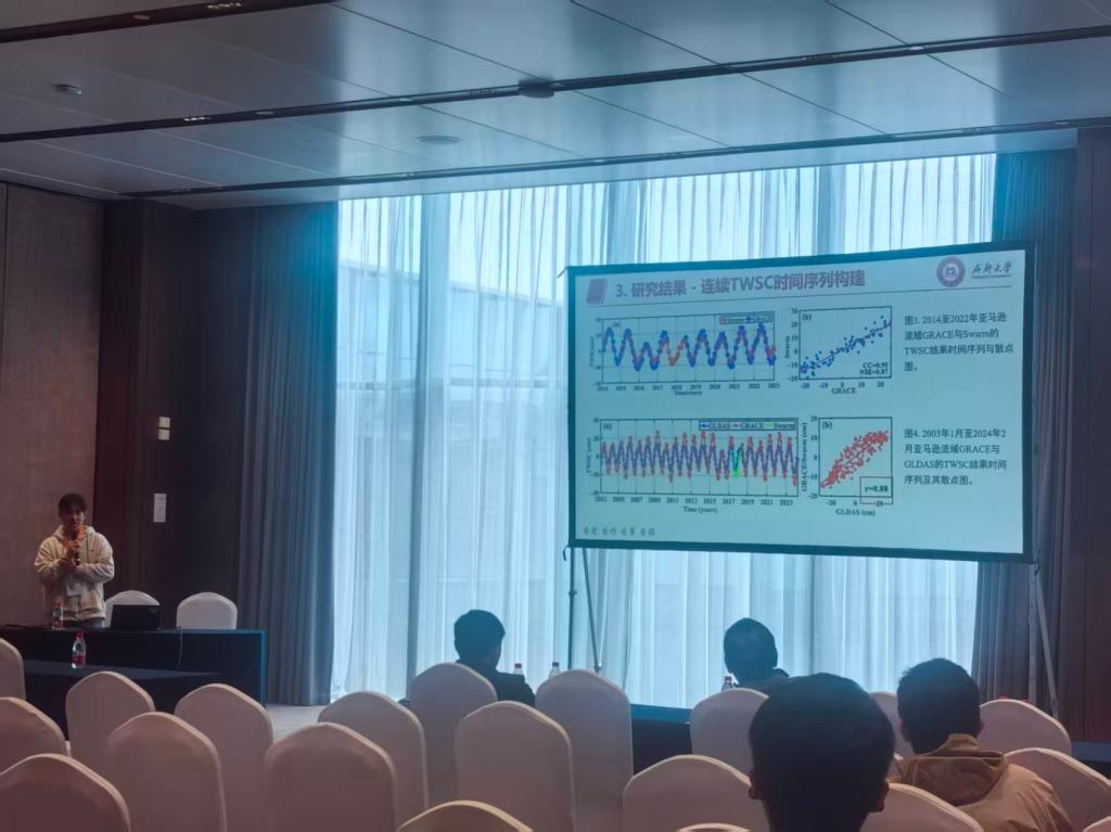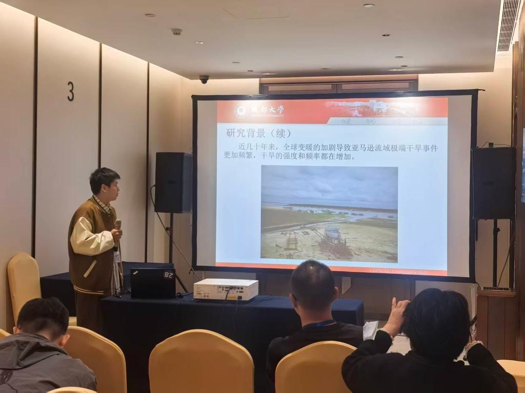 罗江川同学做了题为《利用多源卫星重力数据调查2023/2024年亚马逊流域极端干旱事件》的分会场报告。该研究主要联合多源卫星重力观测数据还原了2023/2024年亚马逊流域极端干旱的时空演化特征,并通过大气垂直运动和水汽通量分析揭示了此次极端干旱发生的物理机制。