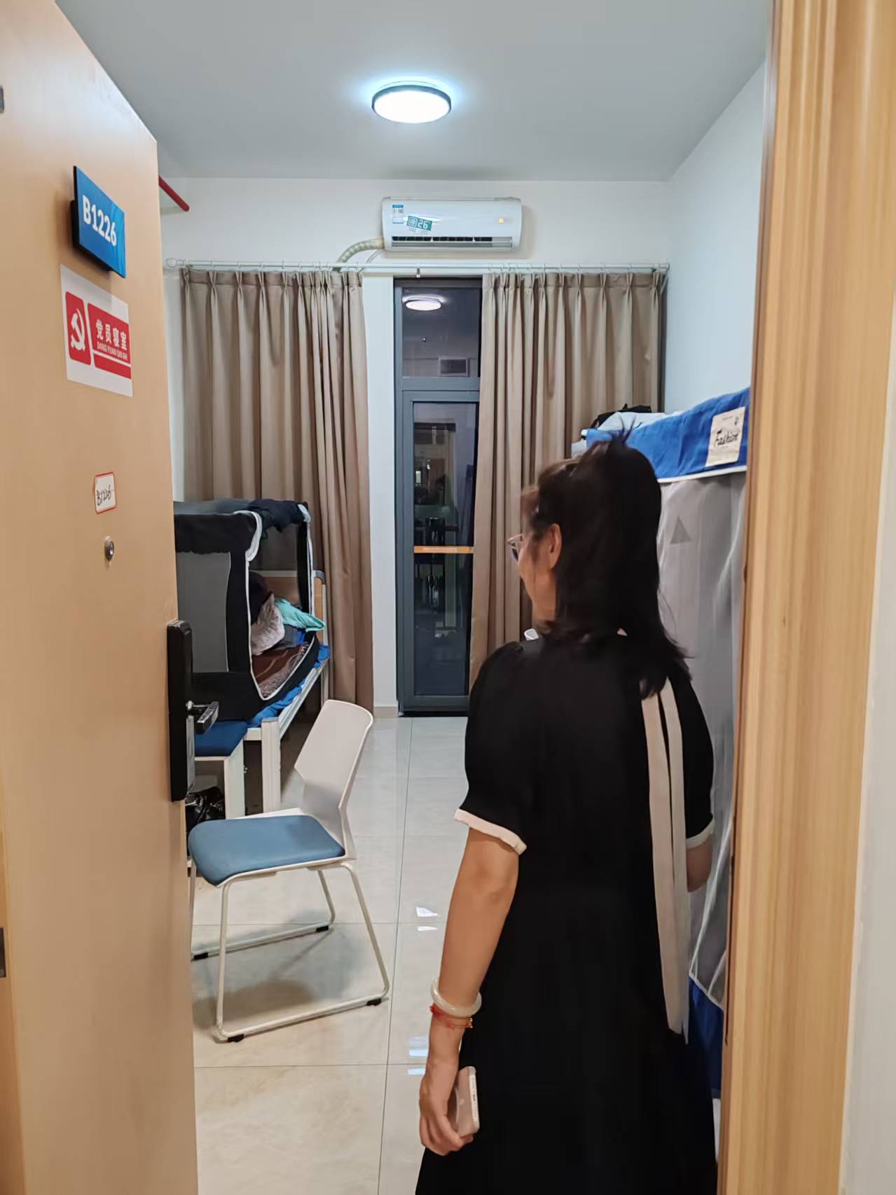为进一步了解研究生的生活状况和实际需求,营造安全、整洁、温馨的宿舍环境,2025年6月13日晚,学院研究生班主任赵老师开展了宿舍查寝工作。